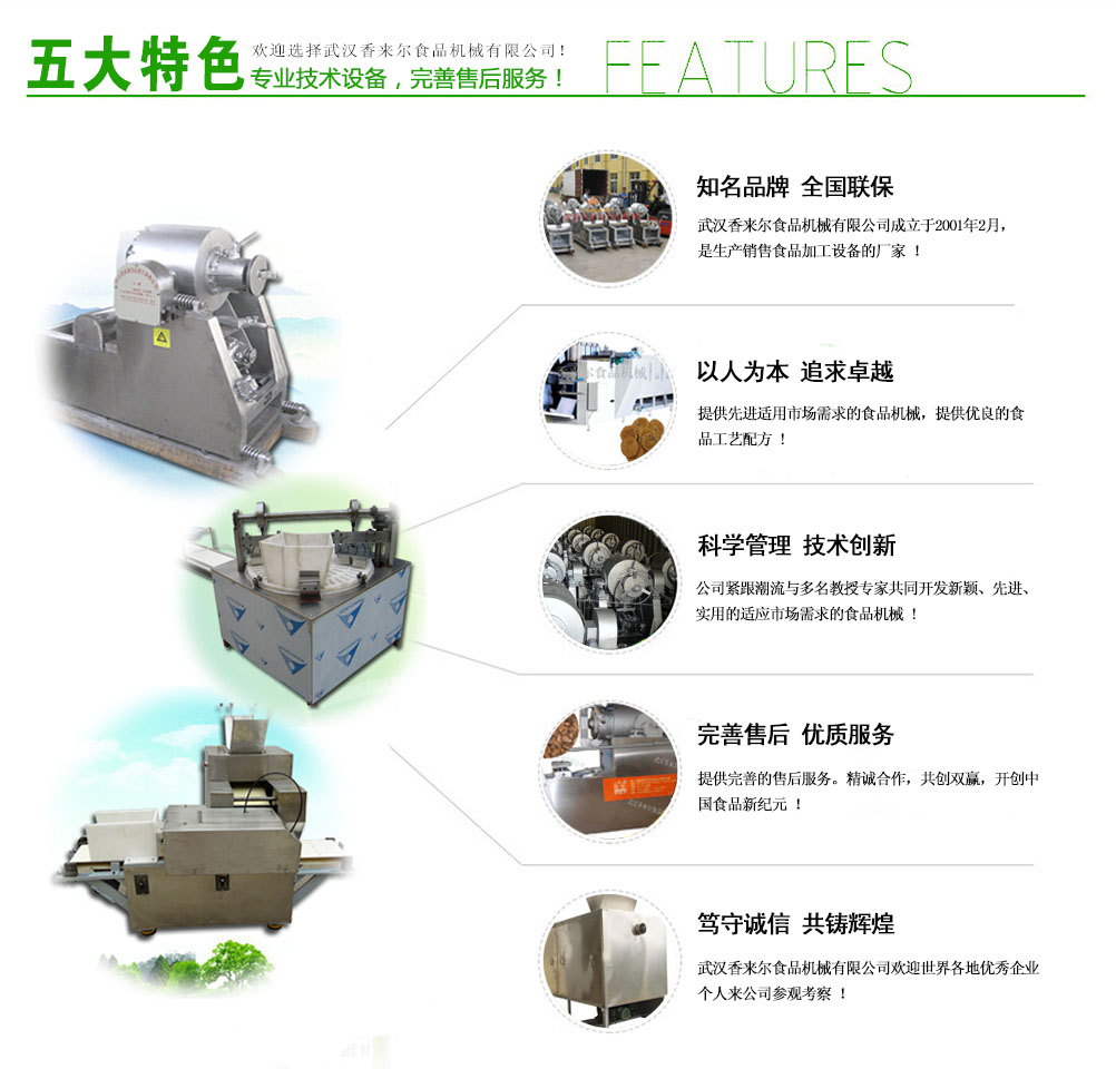 武漢香來爾食品機械有限公司成立于2001年2月,是生產(chǎn)銷售休閑食品加工設備的廠家。公司緊跟市場潮流與華工、華農(nóng)多名共同開發(fā)新穎、實用的適應市場需求的食品機械,自有車、刨、鉆、銑、剪板、折彎等先l進機床100多臺 套。7年誠信通會員,產(chǎn)品出口拉美、非洲、東南亞、歐洲等很多國家和地區(qū),國內(nèi)很多食品企業(yè)都是我們的合作伙伴。目前公司專門設立一個的售后 服務班子,在公司逐步發(fā)展強大的過程中,一直堅持售后服務的同步發(fā)展,精良的食品設...